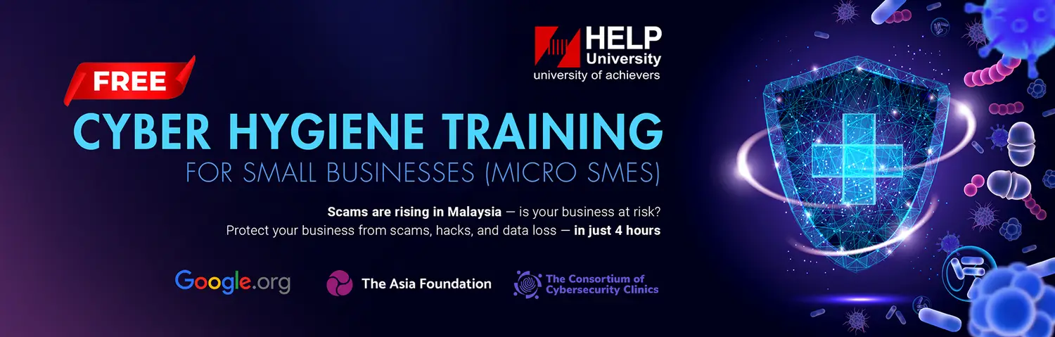 Is your business truly protected against the rising tide of digital threats in Malaysia? Many small businesses face significant risks, such as direct financial loss , staff falling victim to phishing , and the compromise of critical WhatsApp or banking accounts. Our Free Cyber Hygiene Training for Micro SMEs is a dedicated 4-hour workshop crafted to help you identify and neutralize these threats, regardless of your technical background. Supported by Google.org and The Asia Foundation, in collaboration with HELP University , this initiative empowers small business owners, freelancers, and service providers with the practical knowledge needed to safeguard their daily operations.